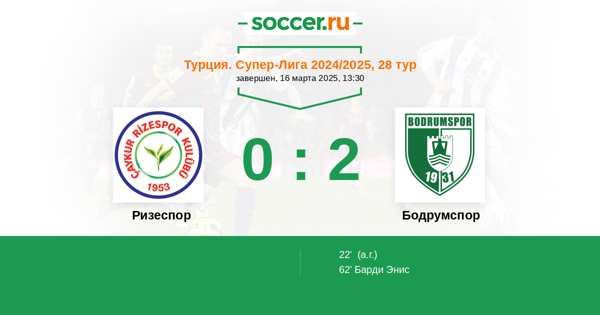 Ризеспор - Бодрумспор: обзор матча 16 марта 2025