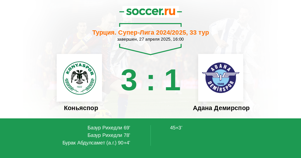 Коньяспор - Адана Демирспор: обзор матча 27 апреля 2025