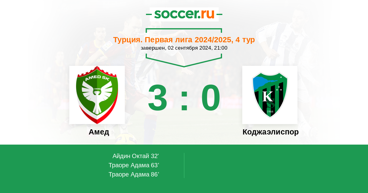 Амед - Коджаэлиспор: обзор матча 2 сентября 2024