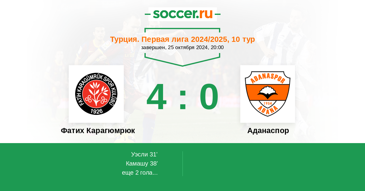Фатих Карагюмрюк - Аданаспор: обзор матча 25 октября 2024