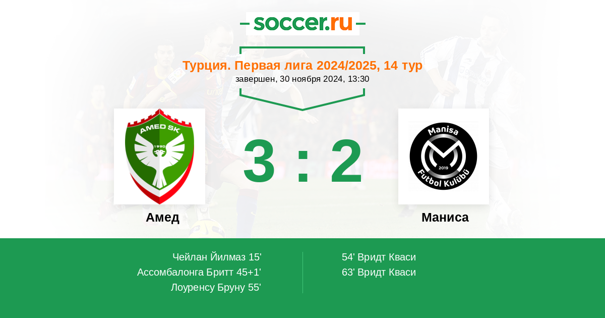 Амед - Маниса: обзор матча 30 ноября 2024