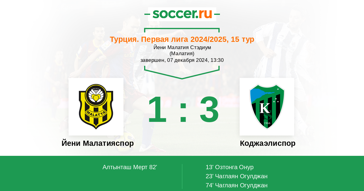 Йени Малатияспор - Коджаэлиспор: обзор матча 7 декабря 2024
