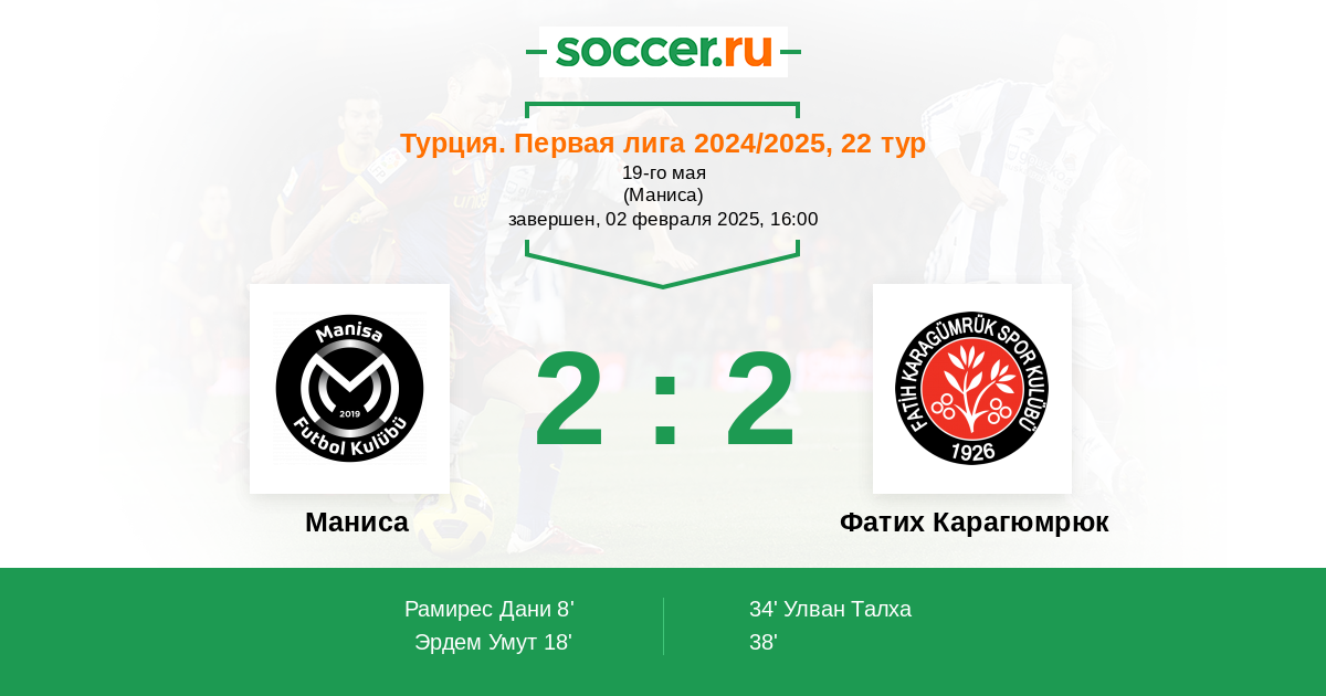 Маниса - Фатих Карагюмрюк: обзор матча 2 февраля 2025