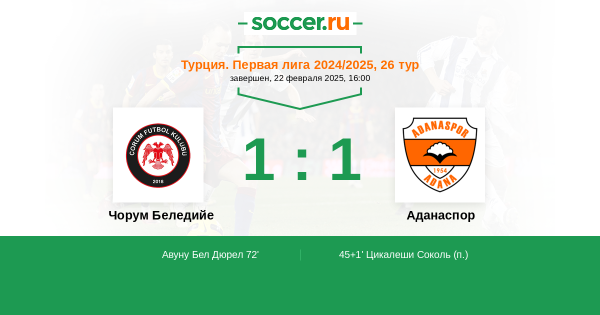 Чорум Беледийе - Аданаспор: обзор матча 22 февраля 2025