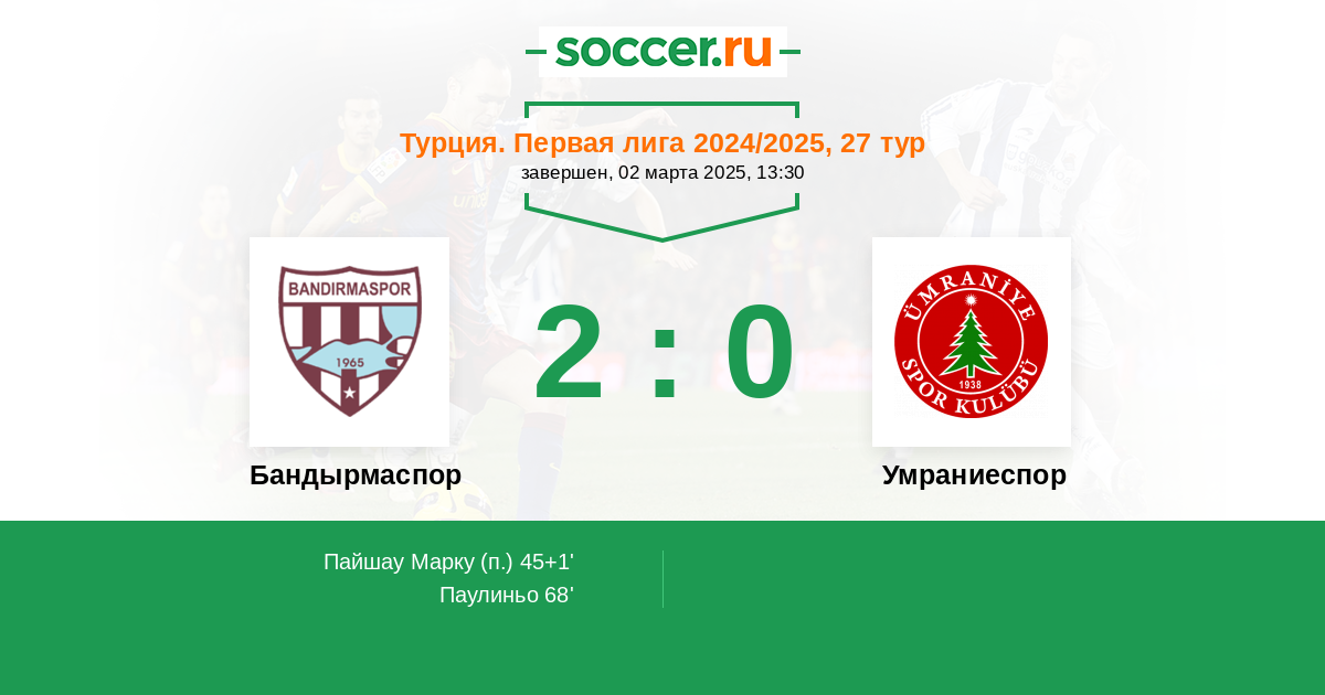 Бандырмаспор - Умраниеспор: обзор матча 2 марта 2025