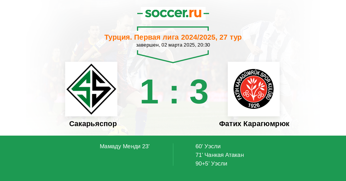 Сакарьяспор - Фатих Карагюмрюк: обзор матча 2 марта 2025