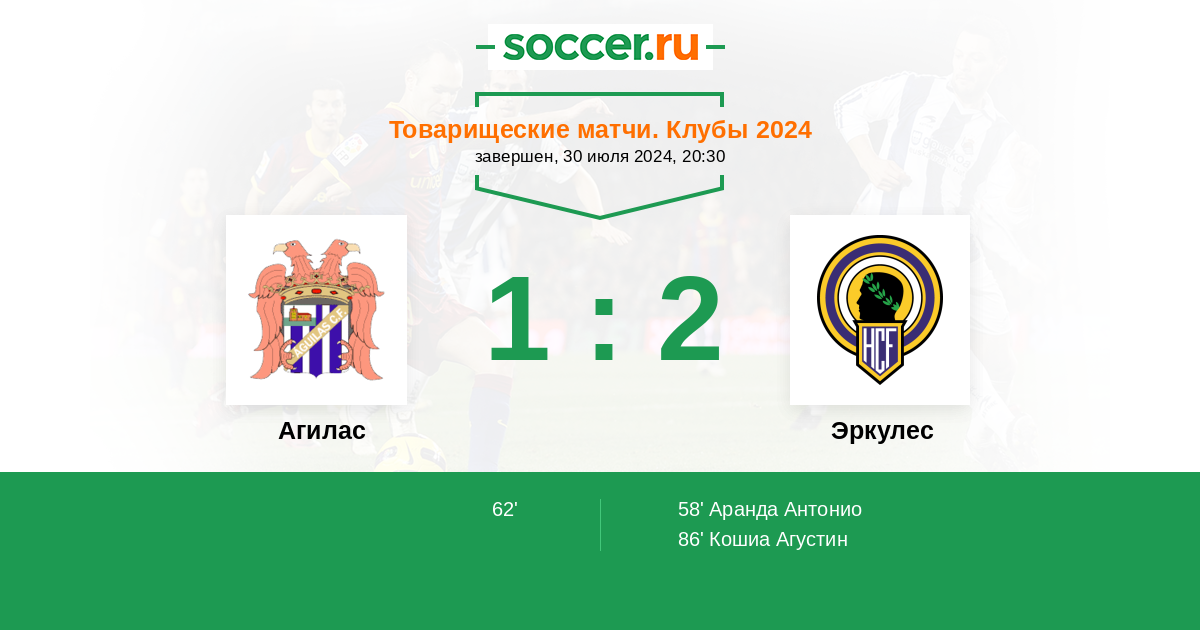 Агилас - Эркулес: обзор матча 30 июля 2024