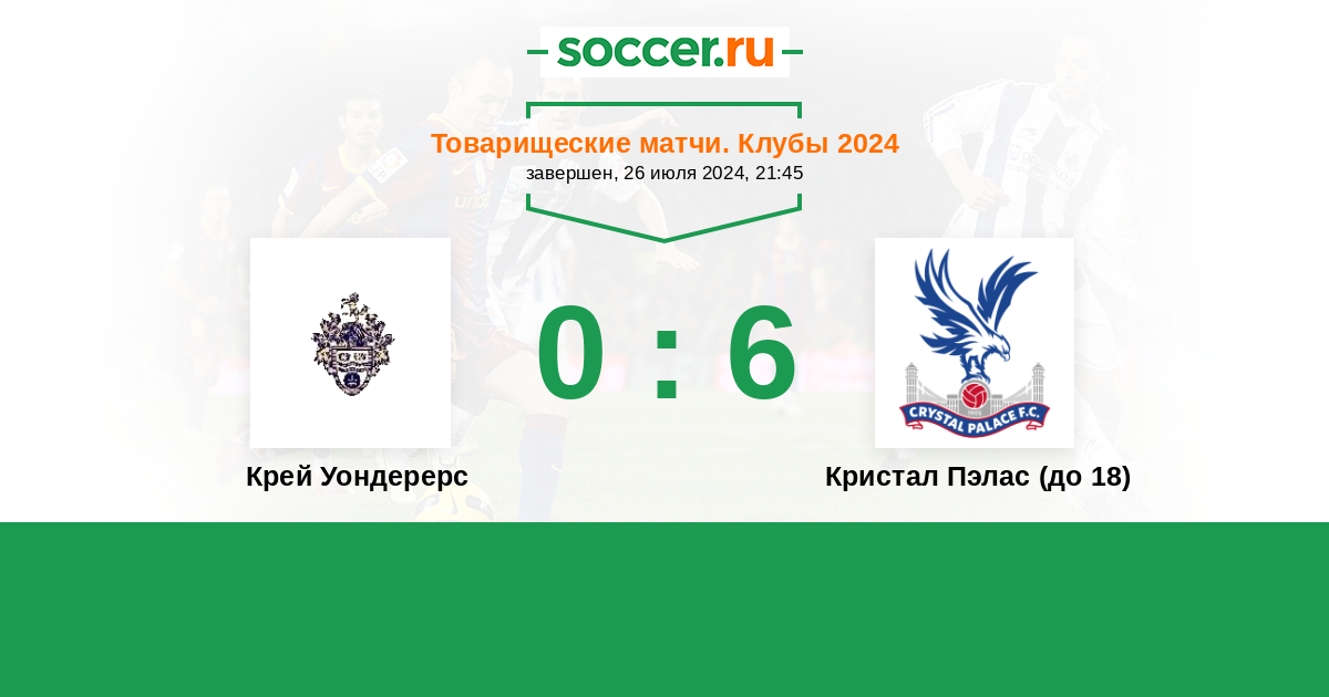 Крей Уондерерс - Кристал Пэлас (до 18): обзор матча 26 июля 2024