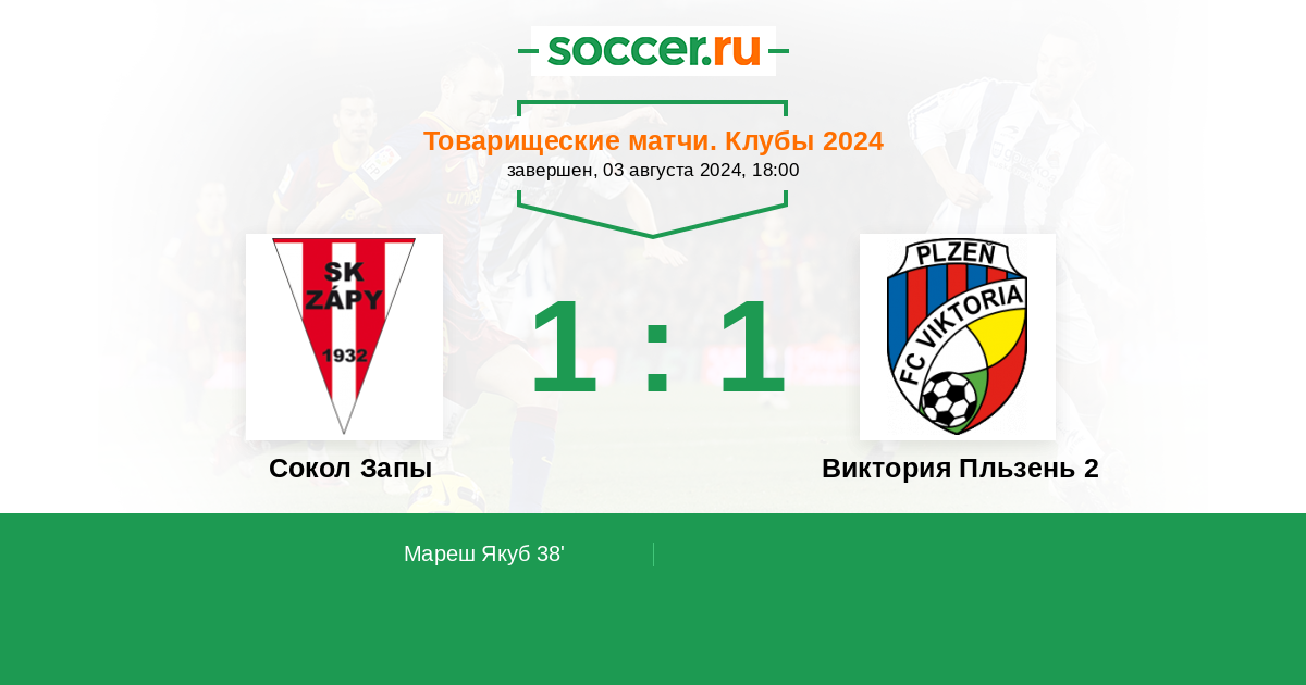 Сокол Запы - Виктория Пльзень 2: обзор матча 3 августа 2024