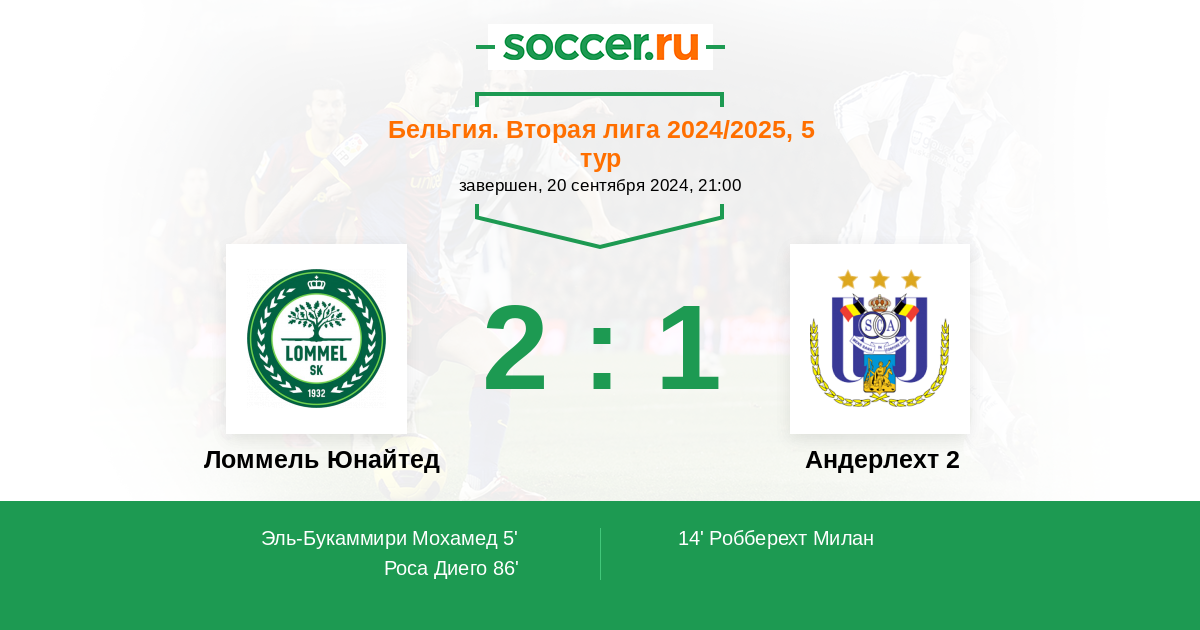 Ломмель Юнайтед - Андерлехт 2: обзор матча 20 сентября 2024