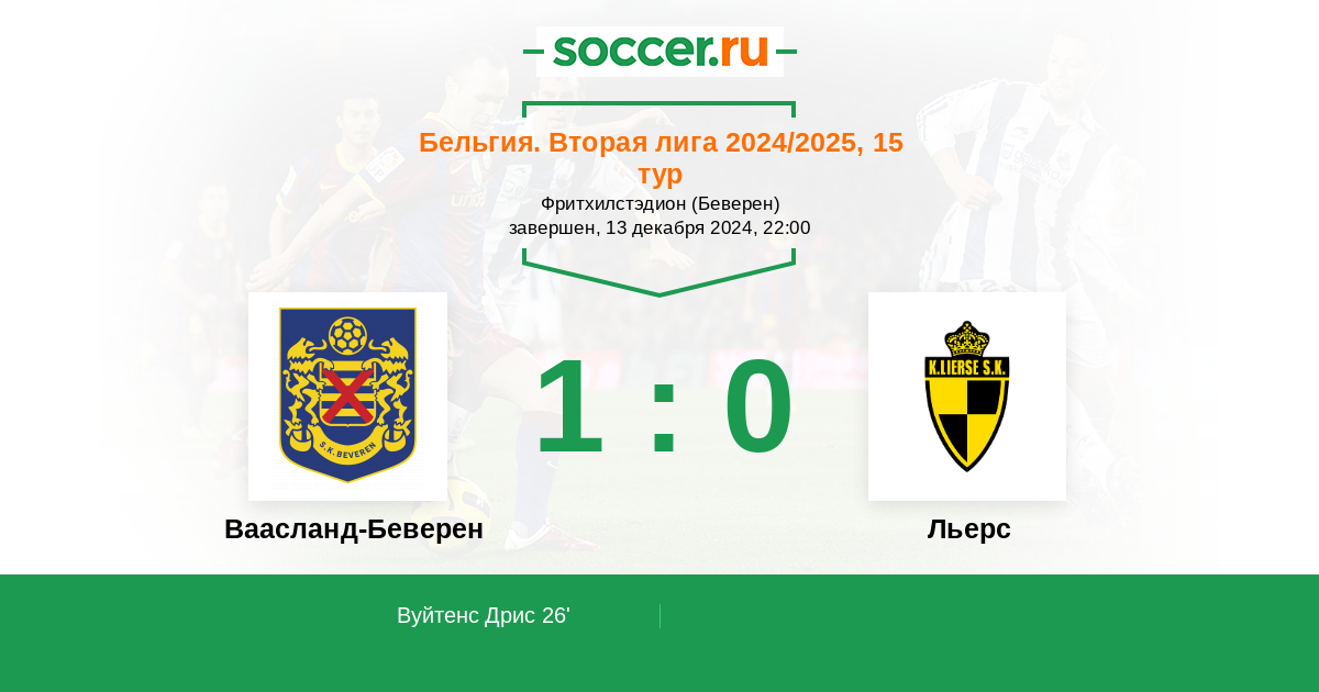 Ваасланд-Беверен - Льерс: обзор матча 13 декабря 2024