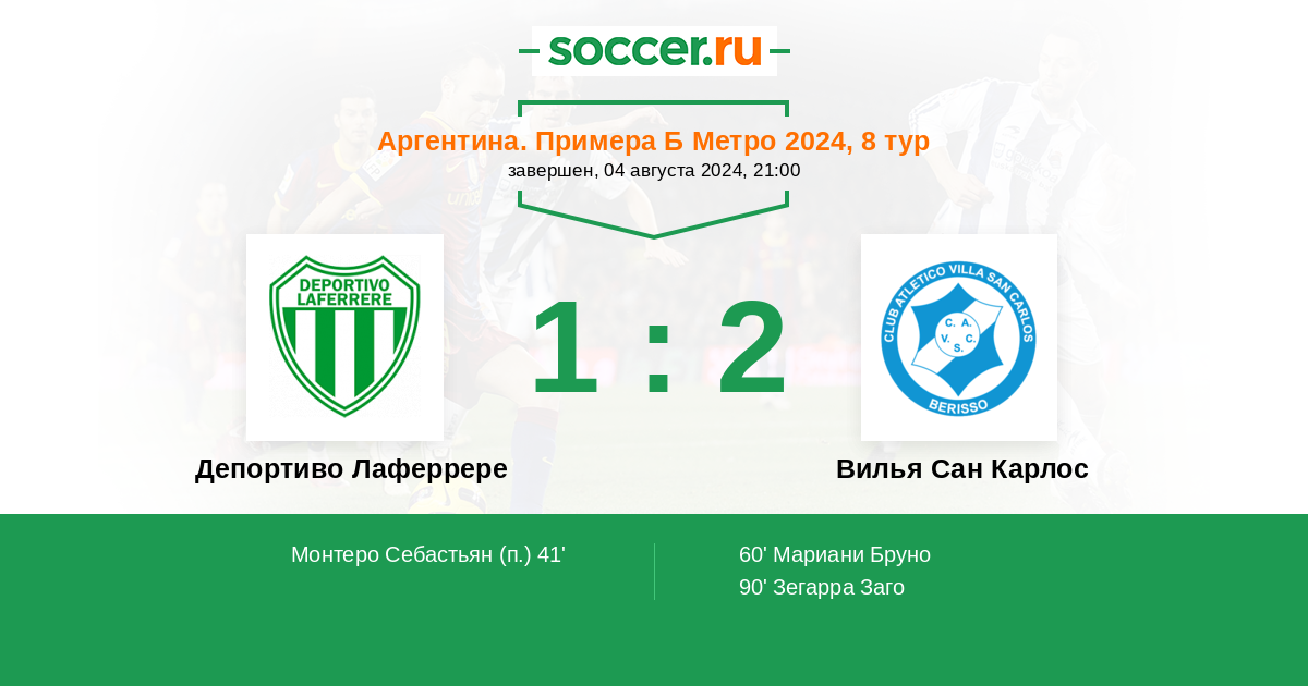 Депортиво Лаферрере - Вилья Сан Карлос: обзор матча 4 августа 2024