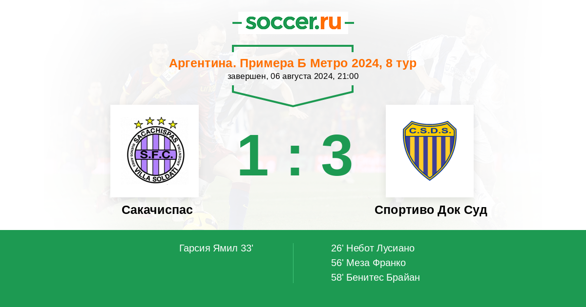 Сакачиспас - Спортиво Док Суд: обзор матча 6 августа 2024