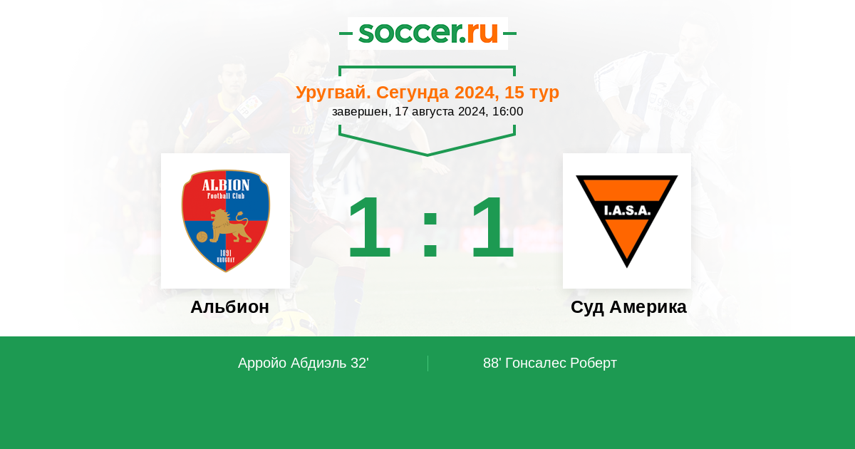 Альбион - Суд Америка: обзор матча 17 августа 2024