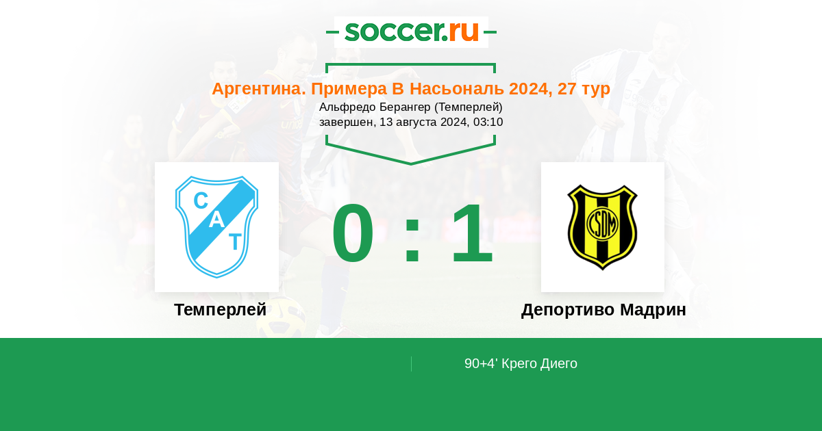 Темперлей - Депортиво Мадрин: обзор матча 13 августа 2024