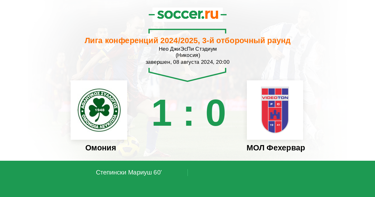 Омония - МОЛ Фехервар: обзор матча 8 августа 2024