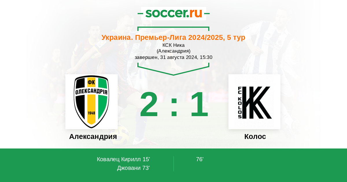 Александрия - Колос: обзор матча 31 августа 2024