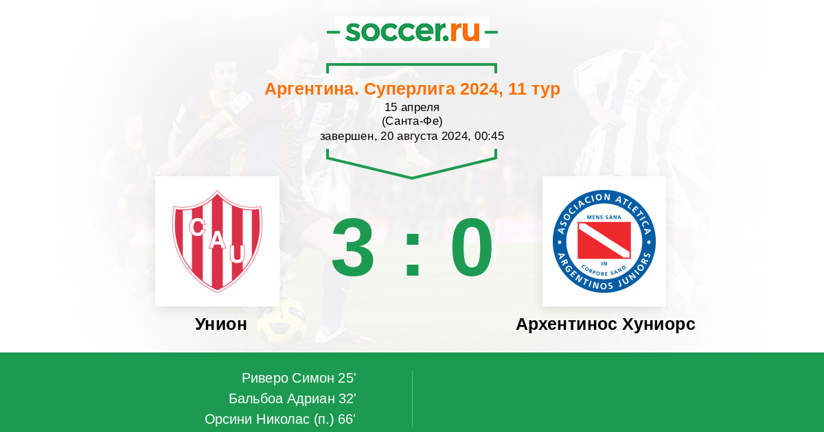 Унион - Архентинос Хуниорс: обзор матча 20 августа 2024