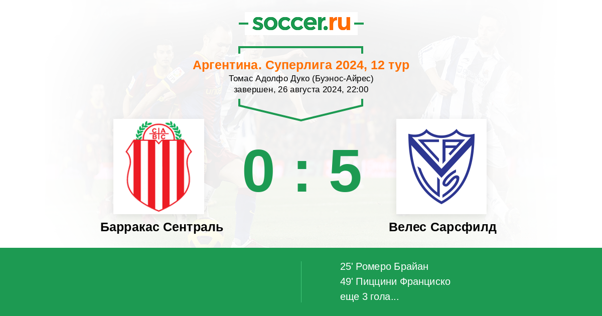 Барракас Сентраль - Велес Сарсфилд: обзор матча 26 августа 2024