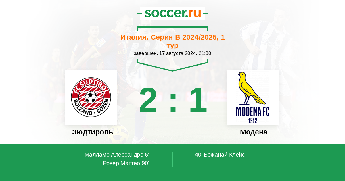 Зюдтироль - Модена: обзор матча 17 августа 2024