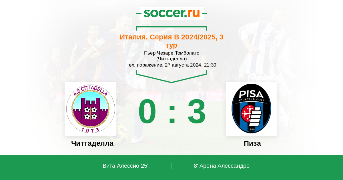 Читтаделла - Пиза: обзор матча 27 августа 2024