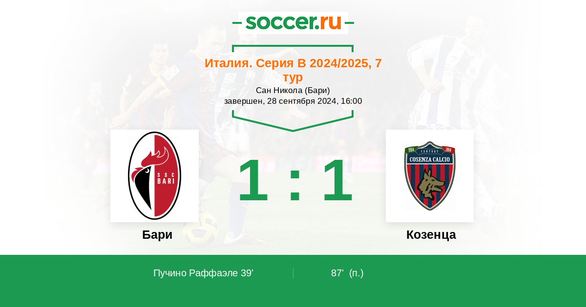 Бари - Козенца: обзор матча 28 сентября 2024