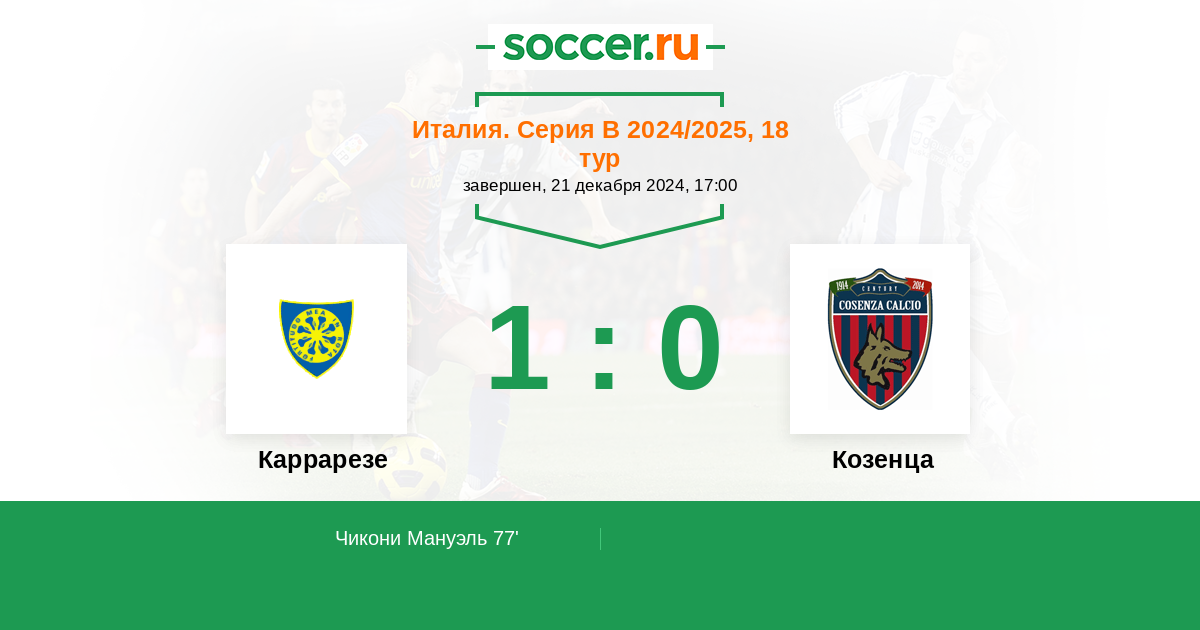 Каррарезе - Козенца: обзор матча 21 декабря 2024