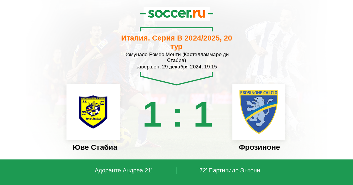 Юве Стабиа - Фрозиноне: обзор матча 29 декабря 2024