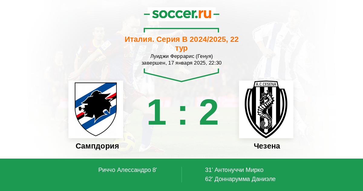 Сампдория - Чезена: обзор матча 17 января 2025
