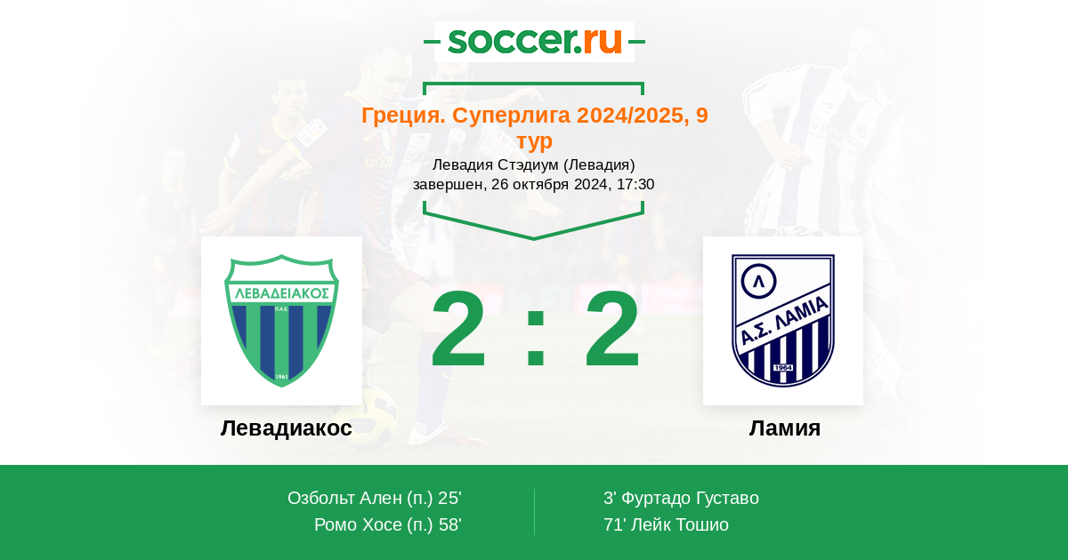 Левадиакос - Ламия: обзор матча 26 октября 2024