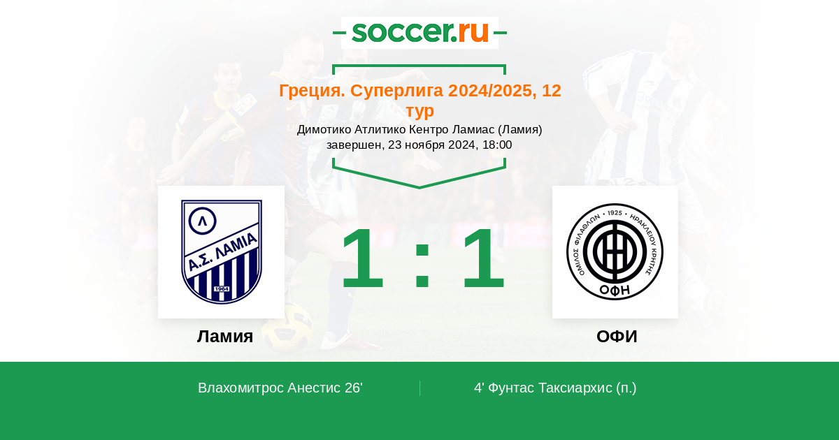 Ламия - ОФИ: обзор матча 23 ноября 2024