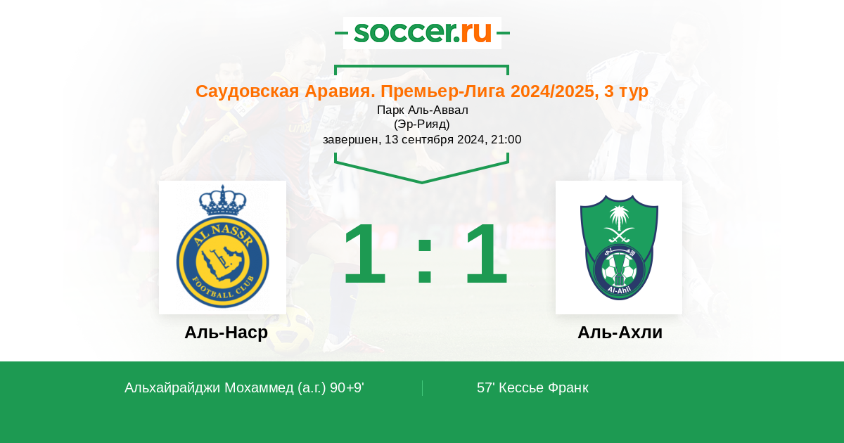 Аль-Наср - Аль-Ахли: обзор матча 13 сентября 2024