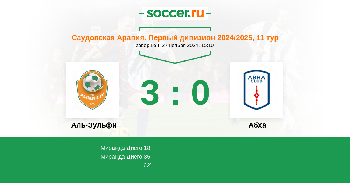 Аль-Зульфи - Абха: обзор матча 27 ноября 2024