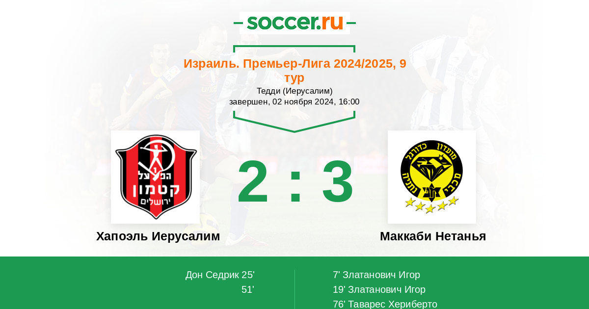 Хапоэль Иерусалим - Маккаби Нетанья: обзор матча 2 ноября 2024