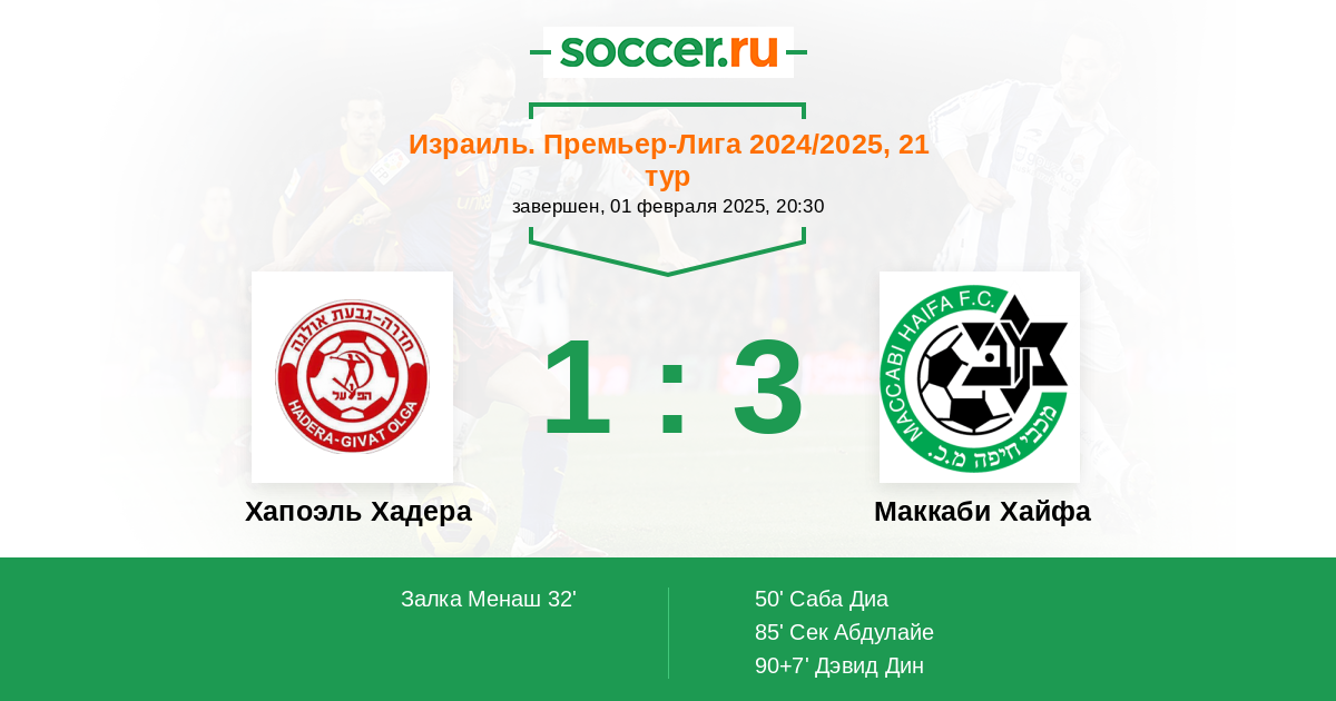 Хапоэль Хадера - Маккаби Хайфа: обзор матча 1 февраля 2025
