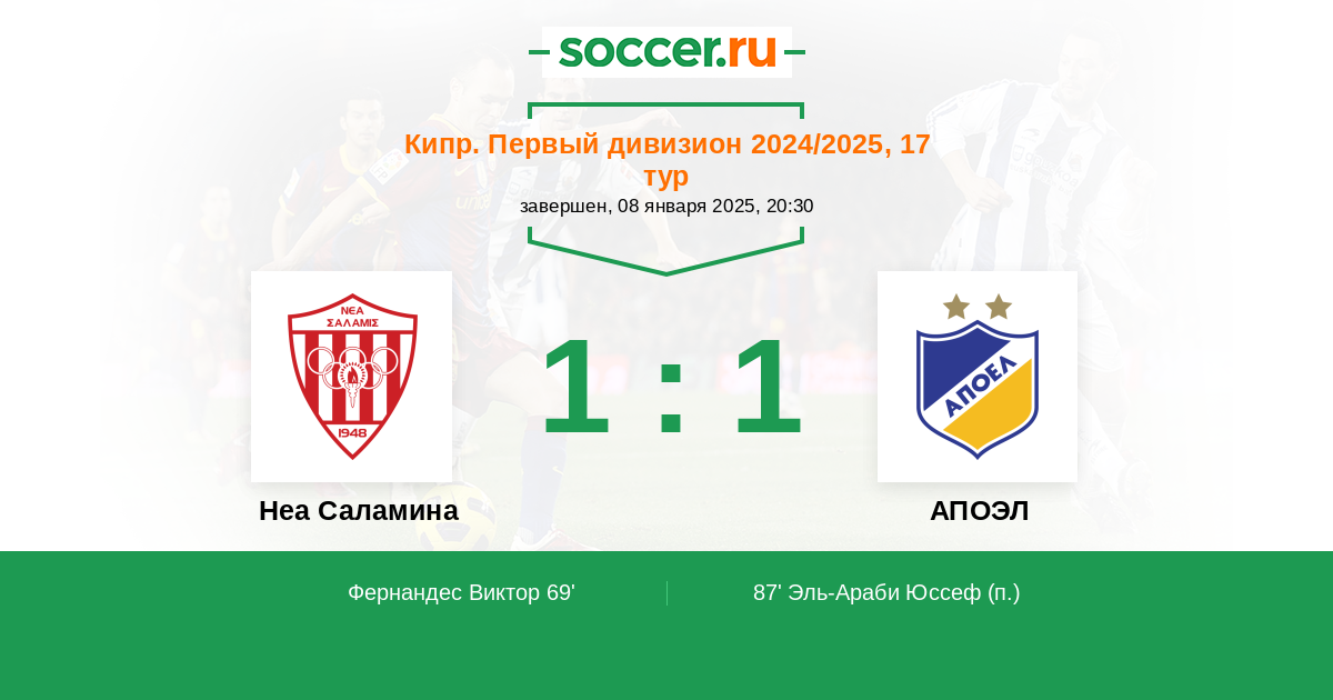 Неа Саламина - АПОЭЛ: обзор матча 8 января 2025