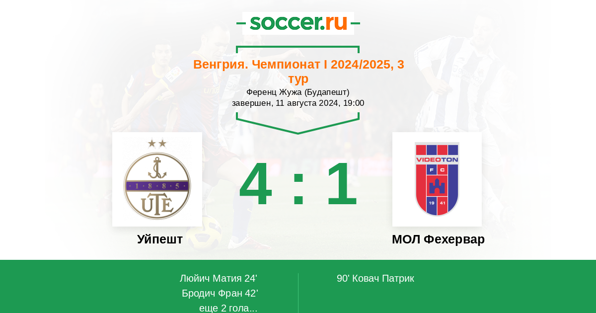 Уйпешт - МОЛ Фехервар: обзор матча 11 августа 2024