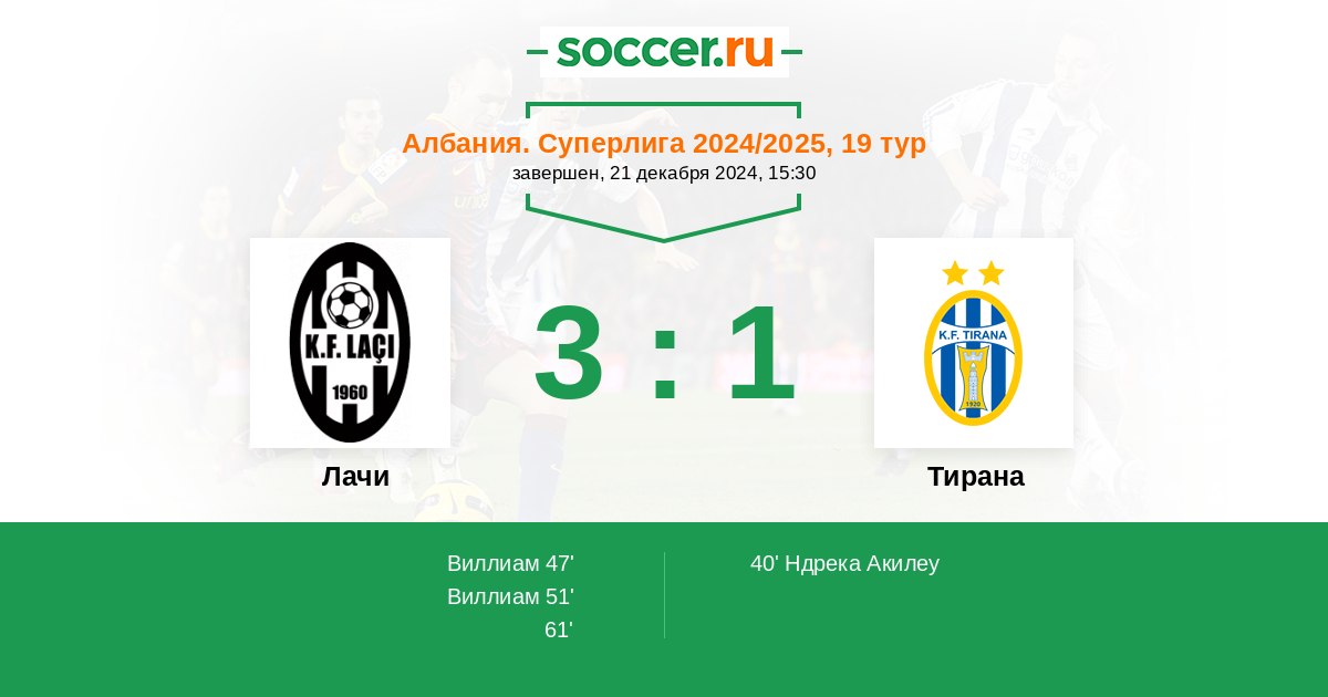 Лачи - Тирана: обзор матча 21 декабря 2024