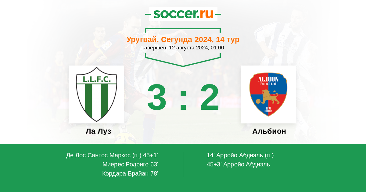 Ла Луз - Альбион: обзор матча 12 августа 2024