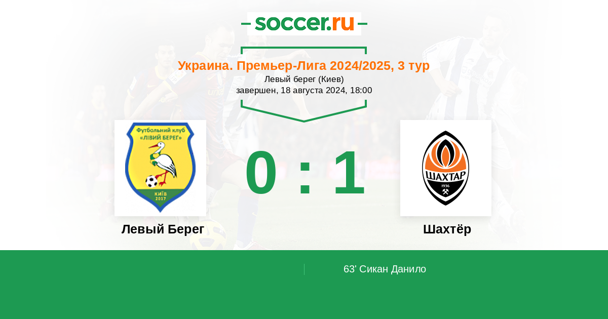 Левый Берег - Шахтёр: обзор матча 18 августа 2024