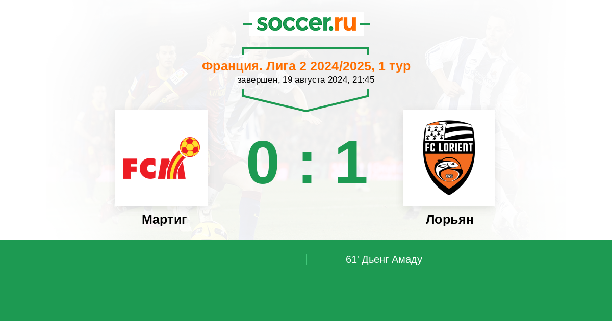 Мартиг - Лорьян: обзор матча 19 августа 2024