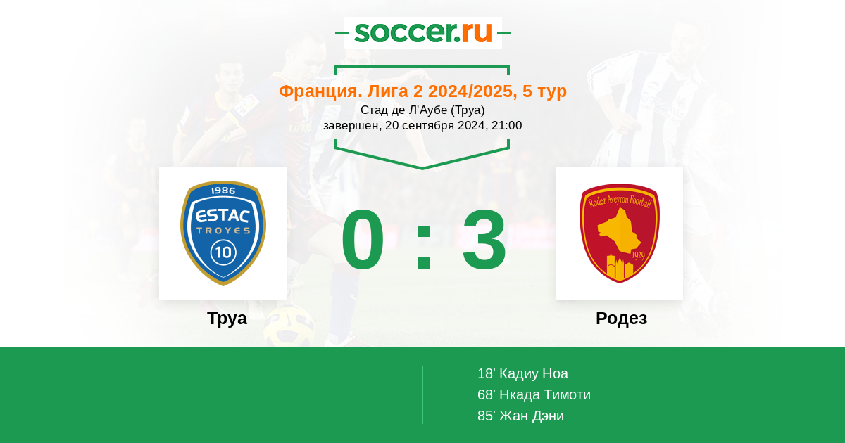 Труа - Родез: обзор матча 20 сентября 2024