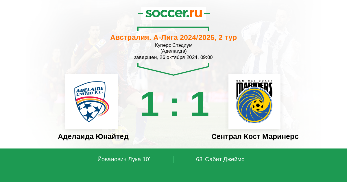 Аделаида Юнайтед - Сентрал Кост Маринерс: обзор матча 26 октября 2024