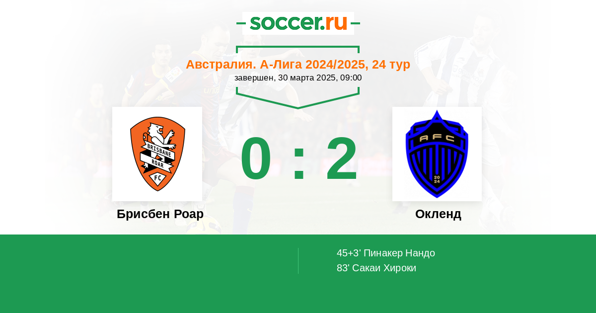 Брисбен Роар - Окленд: обзор матча 30 марта 2025