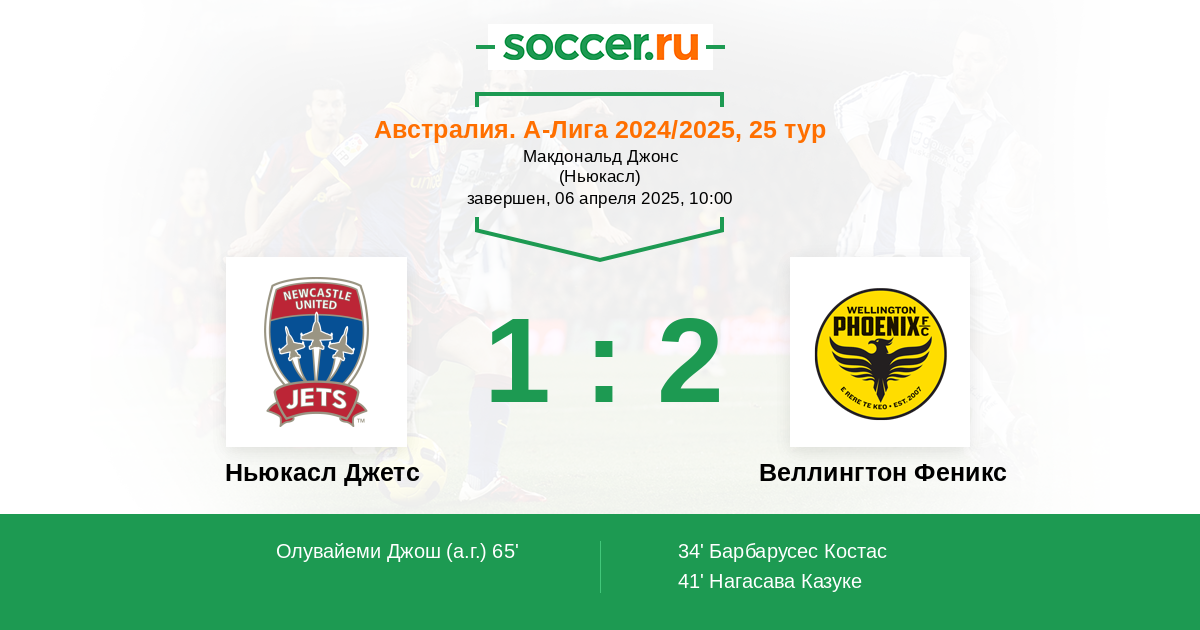 Ньюкасл Джетс - Веллингтон Феникс: обзор матча 6 апреля 2025