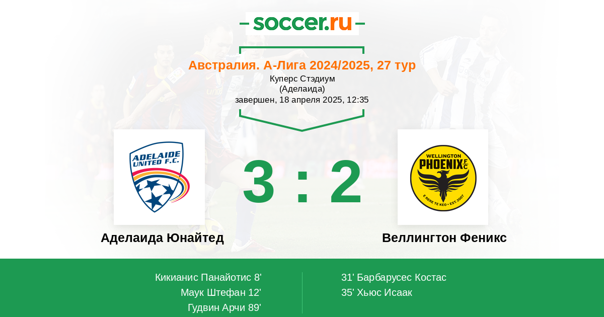 Аделаида Юнайтед - Веллингтон Феникс: обзор матча 18 апреля 2025