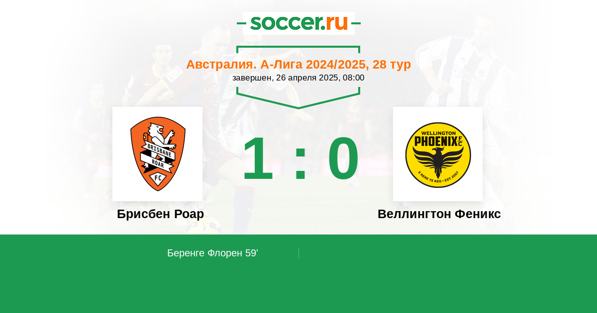 Брисбен Роар - Веллингтон Феникс: обзор матча 26 апреля 2025