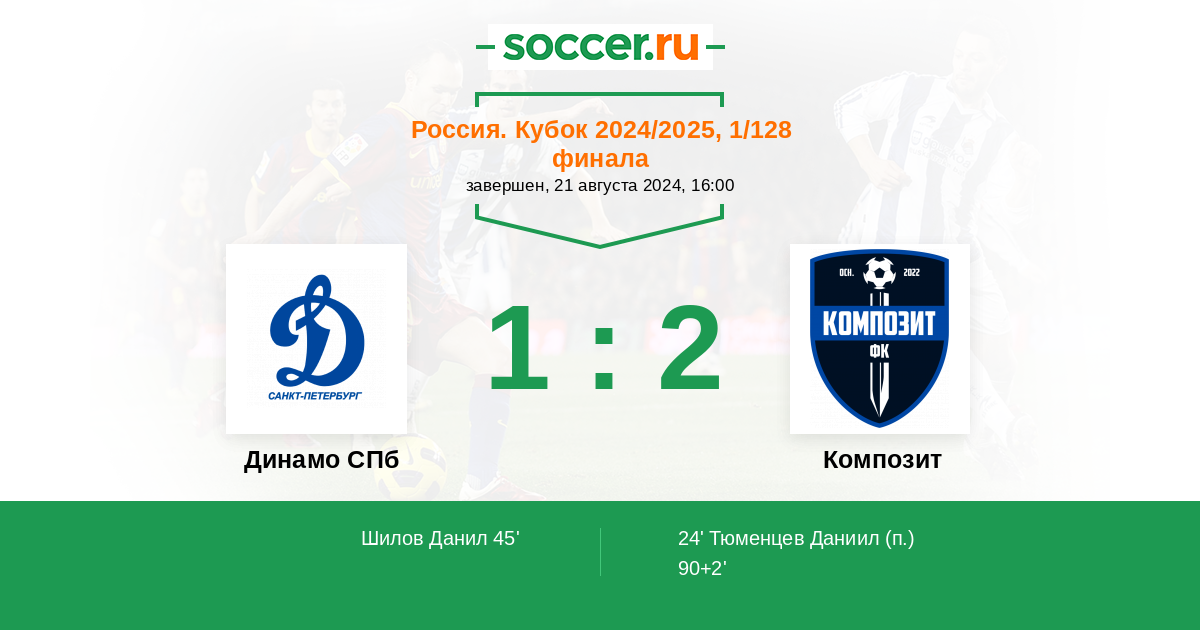Динамо СПб - Композит: обзор матча 21 августа 2024