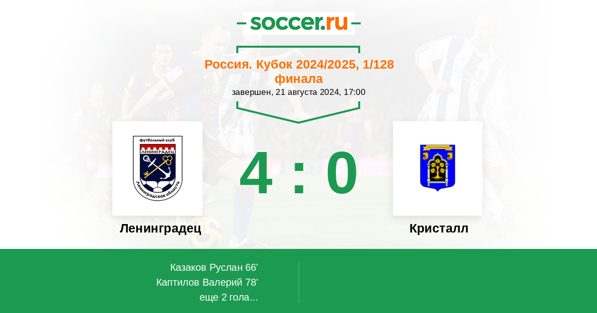 Ленинградец - Кристалл: обзор матча 21 августа 2024