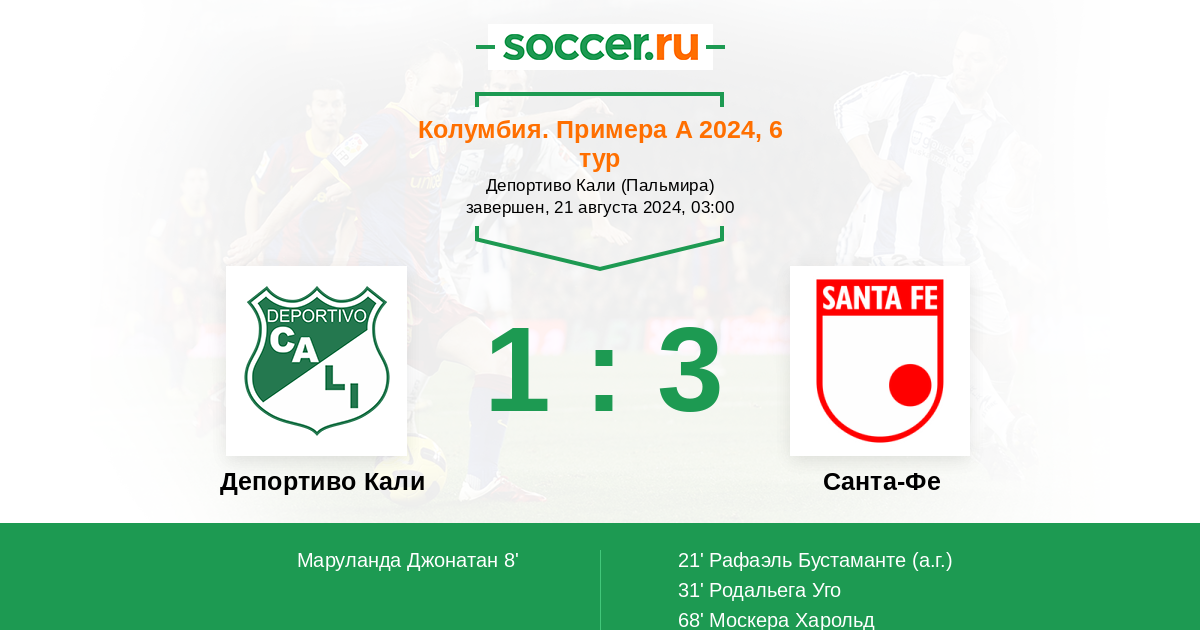 Депортиво Кали - Санта-Фе: обзор матча 21 августа 2024